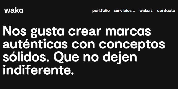 Un buen ejemplo de este tipo de negocio es Waka. Esta agencia especializada en identidad corporativa y branding ofrece servicios variados (diseño UX/UI, branding, creatividad, digitalización) a través de una web clara y fácil de navegar con un portafolio de trabajos realizados.