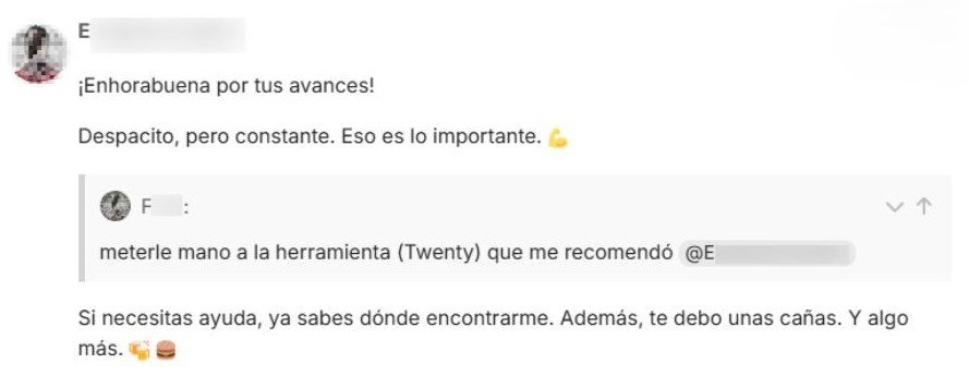 Esto es lo que ocurre cuando compartes en nuestra comunidad tus progresos o dudas: